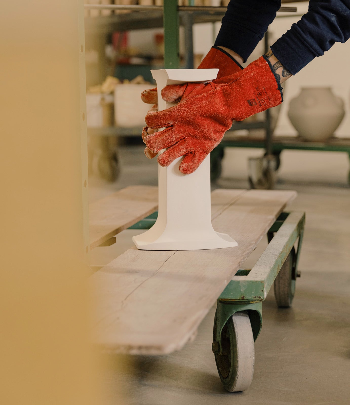 Dittico is a new collection developed in collaboration with Martino Gamper. The project stems from the encounter between the designer’s formal research and the historical identity of the manufactory, moving in balance between design freedom and the ceramic DNA that has defined the Bitossi language for over a century. The result is a family of sculptural vases built around three main forms: some develop upward with soft, organic curves, while others take on a more architectural character.