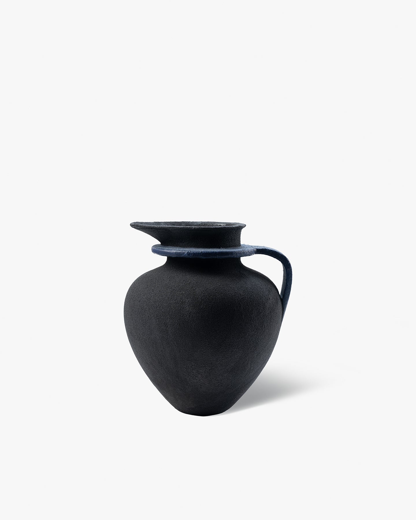 The shapes of resistance is a collection of four sculptural ceramic vases in muted tones of dirty black and dusty blue, featuring softened edges and cracked surfaces. Drawing inspiration from the ancient Georgian ceramic tradition, Rooms Studio establishes a dialogue between past and present, and between materiality and form.